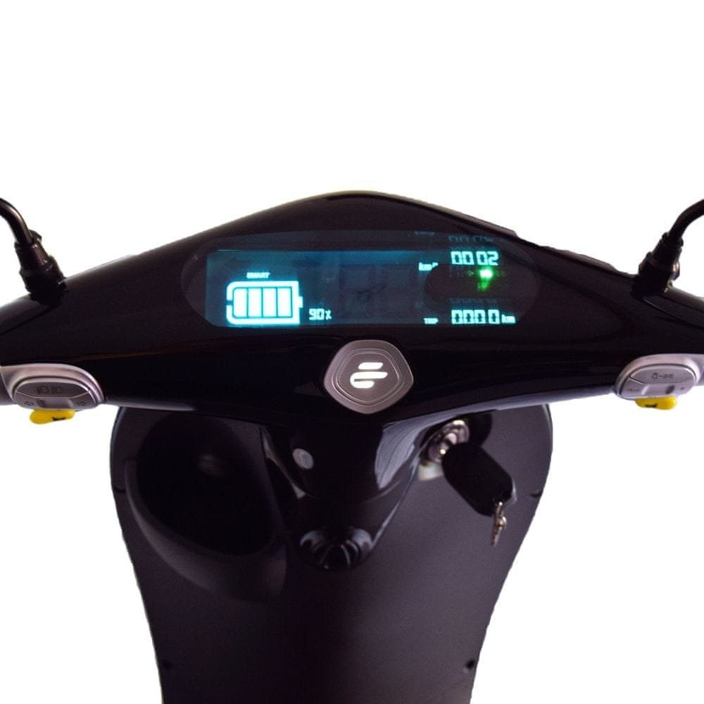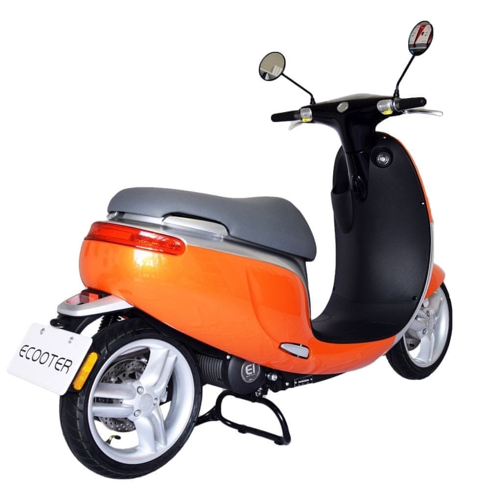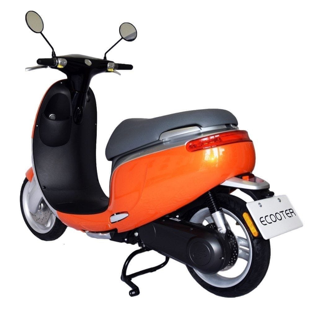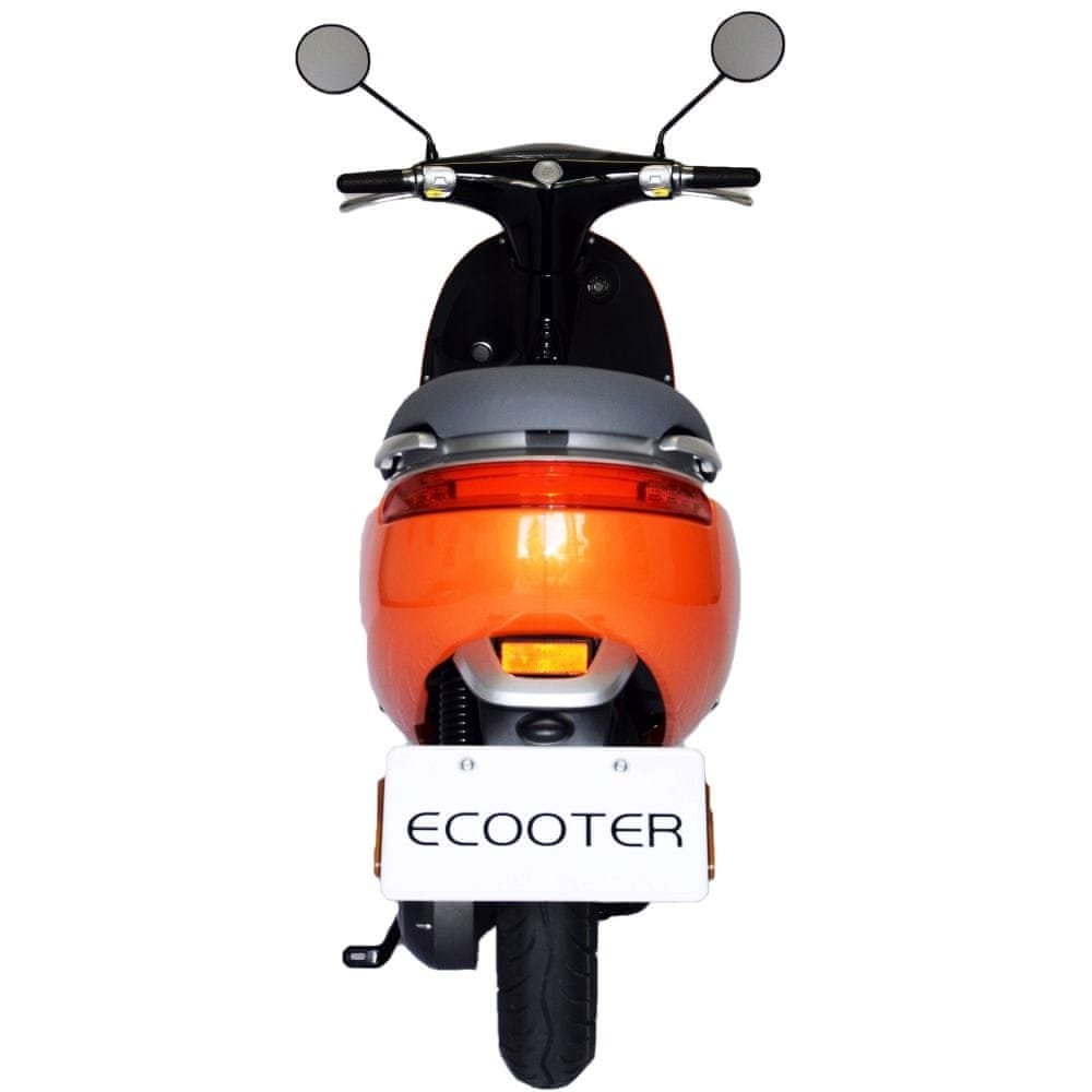 Elektrický skútr ECOOTER je Smartskútr s vysoce výkonným elektrickým motorem, který nabízí jedinečný zážitek z jízdy a řízení. Design je inspirován trupem letadla. Rám skútru s moderní konstrukcí s inovačním obráceným jednopístovým závěsem. O pohon se stará výkonný kompaktní motor E1, redefinuje design elektromorů. Každá komponenta je navržena tak přesně, aby zajistily, že celý systém pracuje více inteligentně a efektivně, jak je to jen možné. O přesnou funkci se stará první regulátor, který indentifikuje signály snímače motoru. Využívá nové strukturní ovládání, čímž je regulátor bezpečný a přináší vysokou účinnost pohonu. Přenos výkonu motoru na zadní kolo zajišťuje karbonový řemen navržený společností Gates tak, aby bylo využito maximálního točivého momentu motoru. Žádný jiný elektroskútr na trhu nenabízí tento typ pohonu. Vysokou užitnou hodnotu skútru podporuje vyjímatelná baterie s možností dobíjení jak doma, tak v kanceláři nebo dílně nebo ji nabíjejte přímo ve skútru na veřejné dobíjecí stanici. Lithium-iontové baterie od společnosti LG s kapacitou 32Ah, které nabízí dojezd až 77 km s váhou pouhých 10 kg, s inovativním systémem správy baterií (BMS), který reguluje spotřebu energie a zaručuje maximální bezpečnost. Osvětlení používá technologii LED s vysokou účinností a viditelností v každém okamžiku. Užitnou hodnotu skútru zvyšuje také tempomat, USB nabíjecí konektor nebo zpátečka. O kvalitě vypovídá i kilometrově neomezená dvouletá záruka.