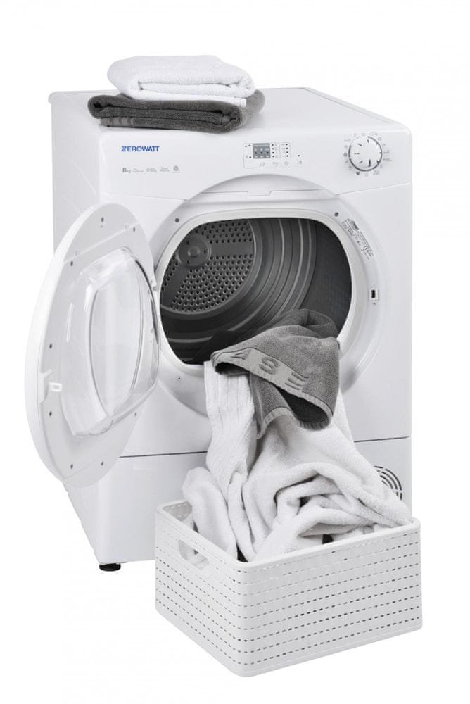 Voľne stojaca kondenzačná sušička v en. triede B pre 8 kg bielizne. Zerowatt ETD C8LG-S disponuje LED indikátormi a kvalitným AC motorom. Medzi programami nechýba praktický antialergický cyklus alebo program Osvieženie & uvoľnenie.