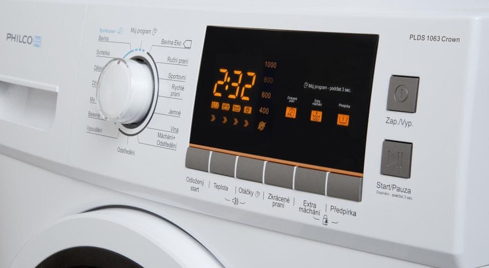 Předem plněná pračka Philco PLDS 1063 Crown v energetické třídě A+++ s náplní pro 6 kg prádla. Pračka má ovládání v češtině a umožňuje nastavení teploty praní i počet otáček.